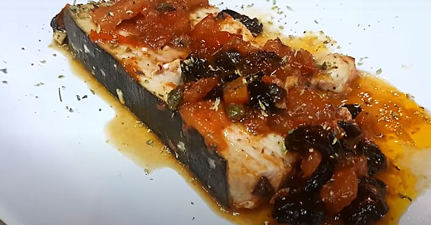 Una ricetta semplice e veloce da preparare, si utilizzano solo prodotti del territorio. Si realizza un sugo con pomodori di pachino, i capperi eoliani e le olive e poi si cuoce il pesce spada nel sugo, in modo che assorba tutti i profumi e i sapori. Vi posso garantire che un pesce spada così saporito e gustoso non l’avete mai assaggiato.